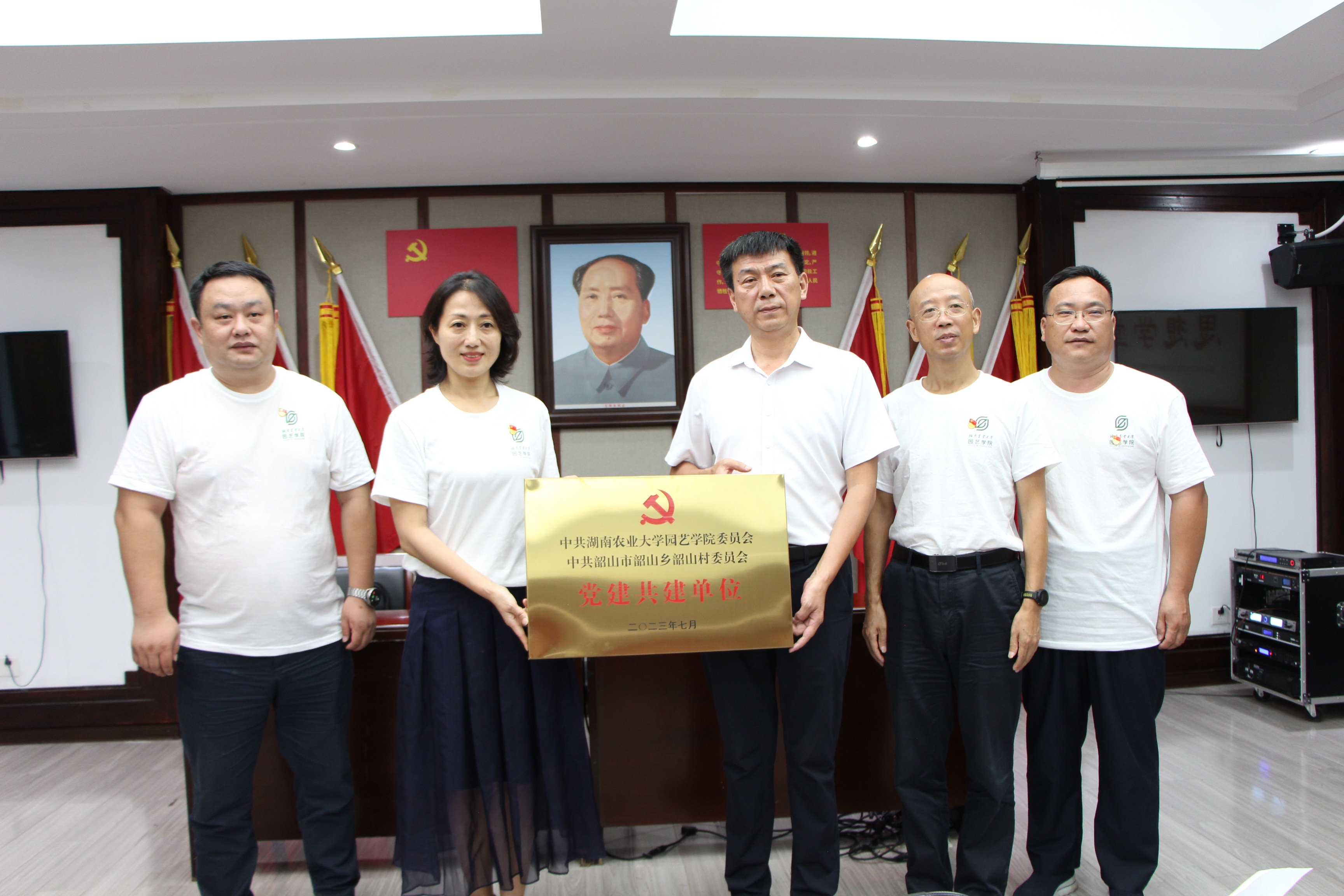 永利yl23411党委与韶山村党委共同揭牌——“党建共建单位”,希望双方加强党建联系,通过在伟人故里开展红色研学,感受浓厚的红色文化氛围,推动双方支部理论联学、思想联育、人才联培、活动联办,实现“红色+”文化党建聚合发展。在韶山市三农培训中心双方共建“‘红色+’园艺产业社会实践基地”,旨在发挥园艺学科优势,科技下乡定点帮扶,通过社会实践深入调查研究,为农业发展精准建言献策,为农民增收创收,助力韶山产业发展、乡村振兴。