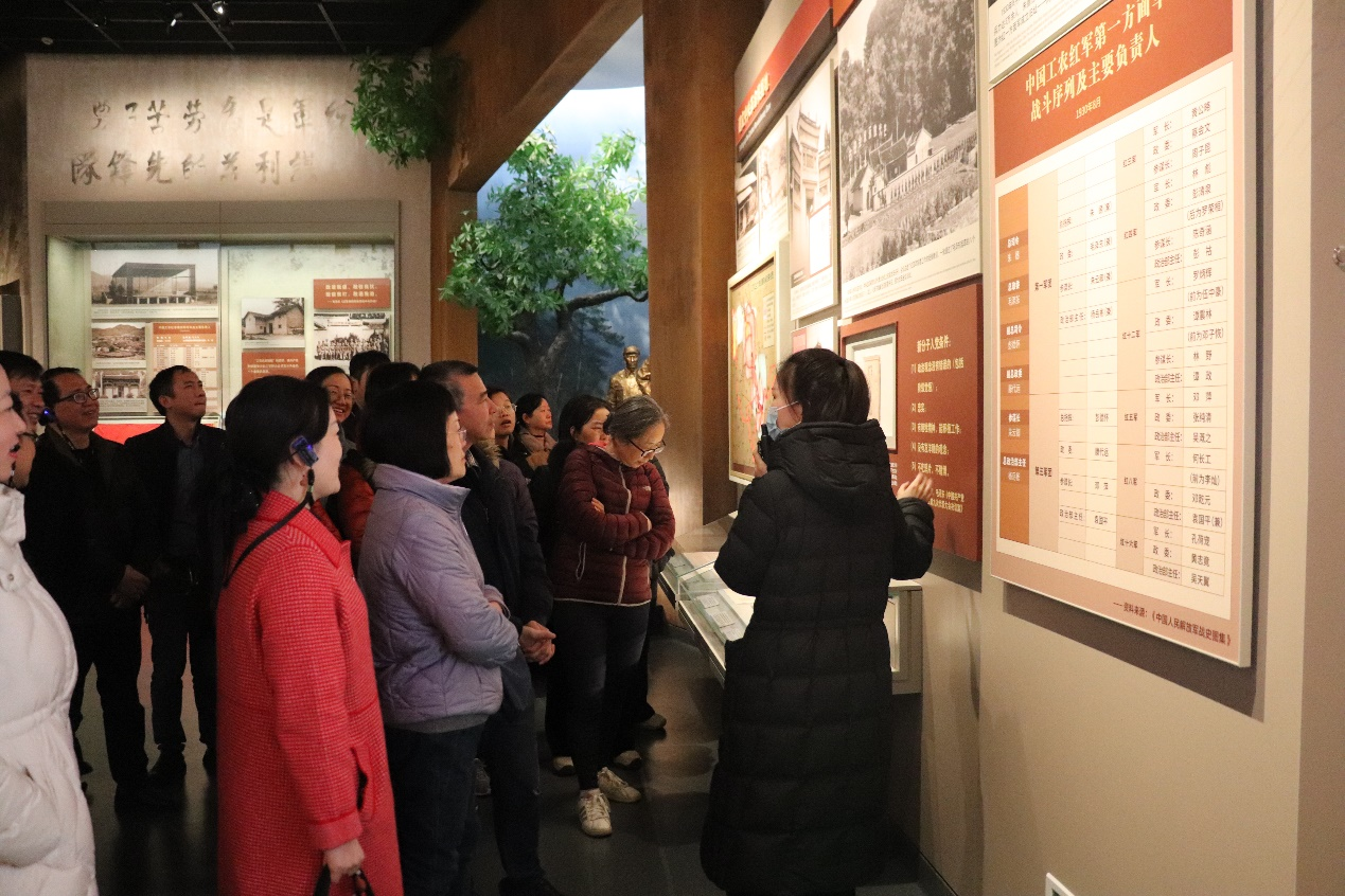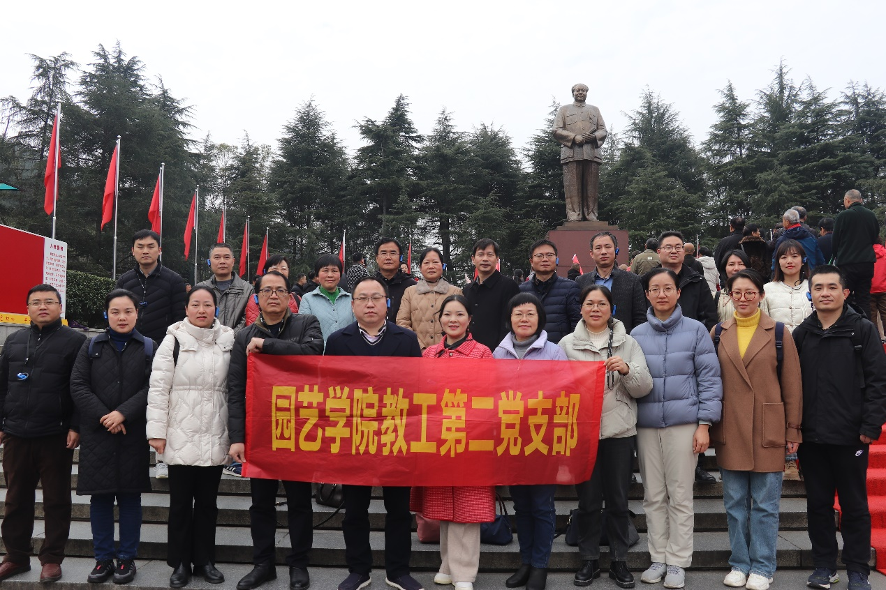 在毛泽东纪念馆,讲解员声情并茂地讲述了毛泽东同志学习、生活、革命的感人事迹,教师党员们感悟革命先烈披坚执锐的斗争精神,感慨伟大领袖矢志不渝的政治信仰,感悟共产党员以身许国的家国情怀。全体教师一同观看演出《最忆韶山冲》,回望这段筚路蓝缕的峥嵘岁月,大家纷纷表示要重视党史学习,持续用党的历史经验增长智慧,结合专业特色,促进茶产业发展。