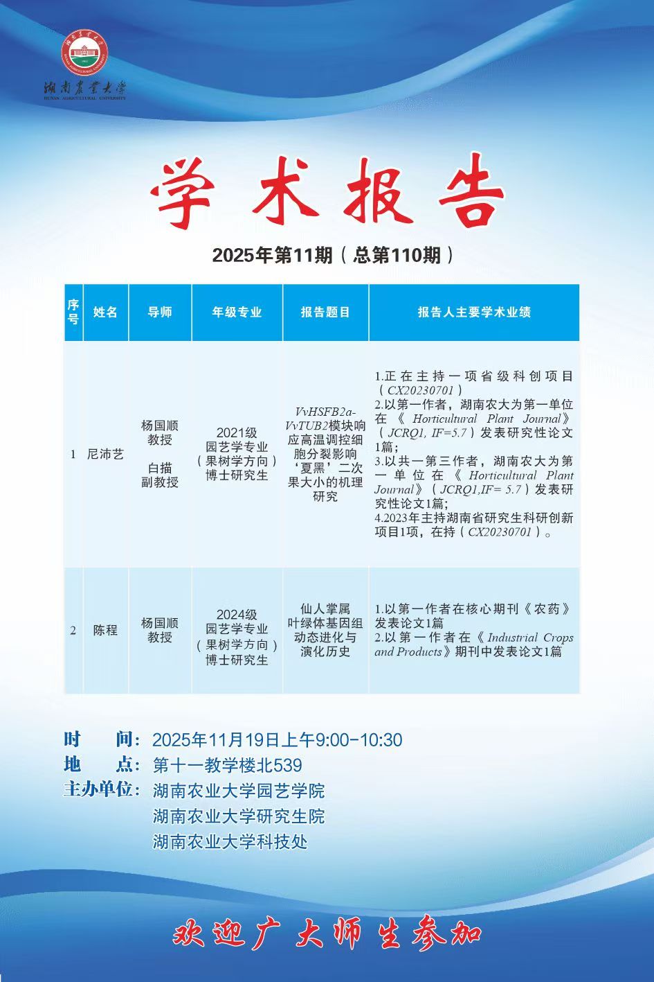 园艺讲坛第110期-博学讲坛:VvHSFB2a-VvTUB2模块响应高温调控细胞分裂影响‘夏黑’二次果大小的机理研究 仙人掌属叶绿体基因组动态进化与演化历史