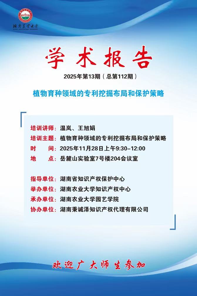 园艺讲坛第111期-名师讲坛:植物育种领域的专利挖掘布局和保护策略