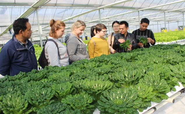“这几厢甘蓝,出现黄斑枯叶的原因是缺少钙,需要补充有机钙物质。”11月27日,在君山蔬菜科技园露地甘蓝品种试验区,湖南农大博士生导师黄科耐心的向他的波兰籍学生讲解。黄科和他一起过来的博士生导师刘明月向记者介绍,新泰和集团是湖南唯一一个设立了两家院士工作站的农业企业,也是国家高新技术企业,在蔬菜科技园处处都能探寻到科技创新的成果散发的魅力和光彩。这里既是湖南农大学生的实训基地,更是学生的创业平台。仅大学生孵化创业园就有26名农大学生。今天来此实习的Sylwa、magda、angelikal三位波兰人,都是湖南农大园艺系研究生一年级学生。两位导师带着他们的学生在瓜菜小镇从数字信息中心到水肥一体化滴灌,从有机基质栽培到潮汐式水培,从露地种植到大棚生产全程了解,分析特色、讲述方法,认真传授学生们在课堂上学不到的知识。