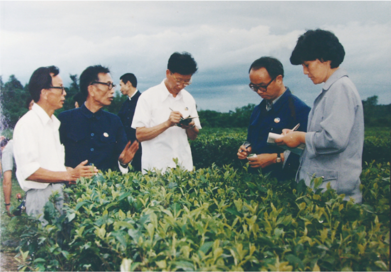 茶学系王融初、朱先明教授等在茶园进行田间调查