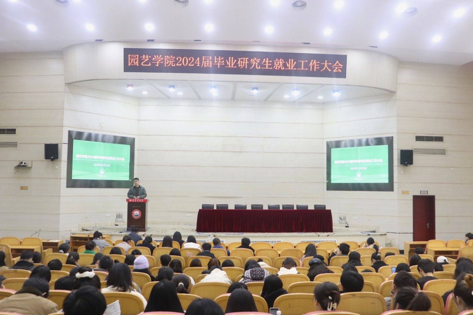 本网讯(张翼博 仇舒琪)为贯彻党的二十大精神,深入实施“就业优先”战略,进一步落实学校部署的毕业生就业工作,引导学生做好就业准备,2023年11月16日上午,永利yl234112024届毕业研究生就业工作大会在图书馆一楼大成厅举行。学院党委副书记曾桦、学工办主任周星、研究生辅导员张翼博出席本次会议,学院200余名毕业研究生参会。